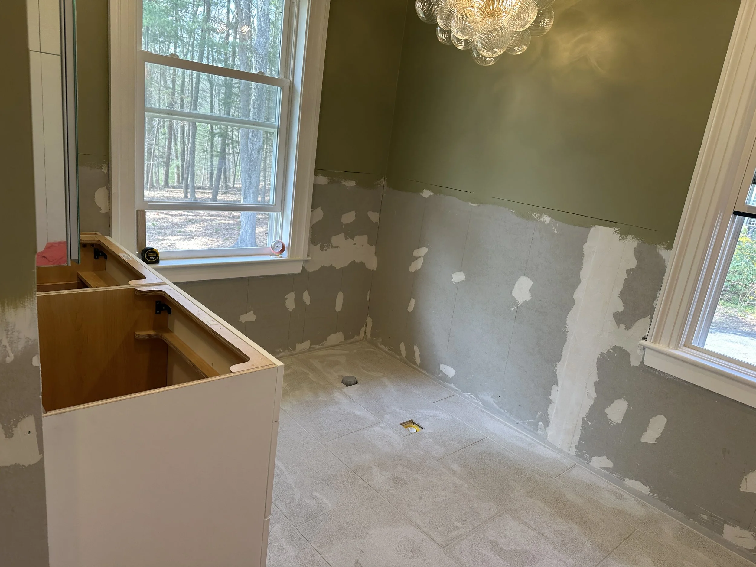 From there some wall and ceiling paint and we were able to start putting in the light fixtures. We’ll continue with that till complete, get the floor tile grout done and then it is time to get busy on wall and shower tile. Things are coming together for sure!