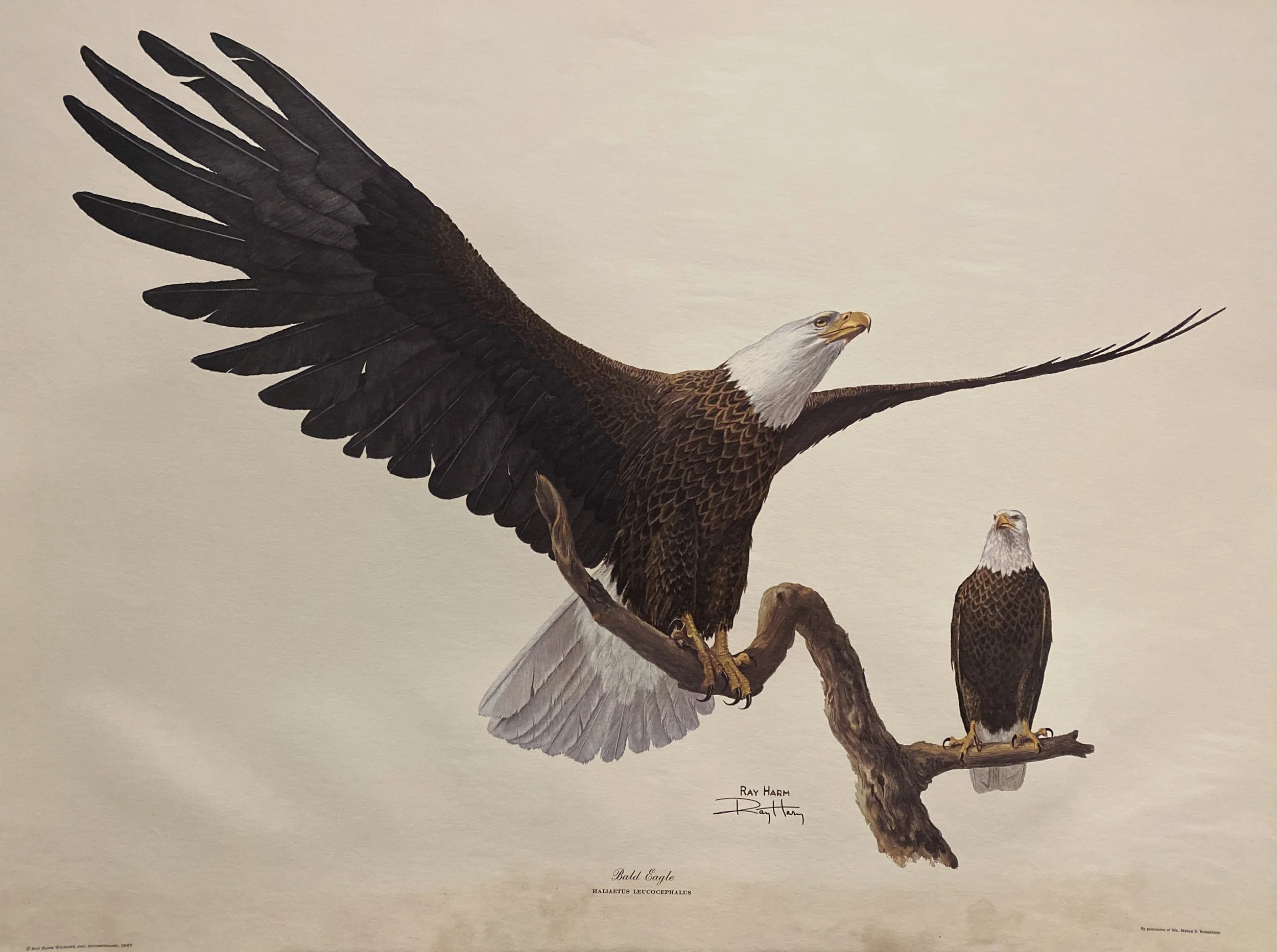We recently mentioned that we had been gifted a fine collection of Ray Harm and Guy Coheleach “limited edition” art prints which we intend to eventually sell here from the website (will be setting up a page in our shop collection). Currently doing a complete inventory of what we have and documenting all of that. Wanted to share a little taste of what we are talking about so will feature a pic or two each week until we get that shop page up and running. This week’s sample print below!